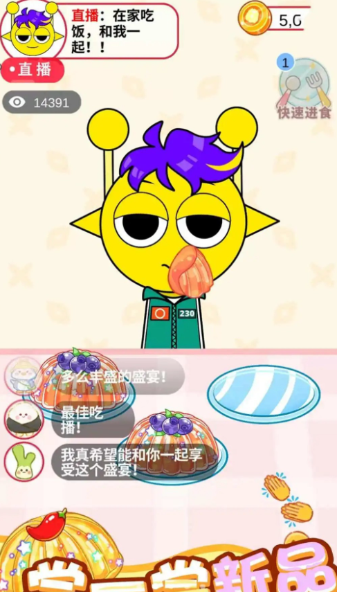 《吃模拟器》是一款轻松好玩的模拟吃播的游戏。作为一个吃货,你需要吃掉所有美味的食物。你的胃就像一个无底洞,只有这样你才能顺利通过关卡。在游戏中,你将控制角色不断进食,完成更困难的挑战,从而获得更好的排名。游戏的特点是一个有趣的艺术风格,是非常容易操作。你只需要拖着食物。游戏还重现了来自世界各地的独特美食。玩家可以解锁食谱并建立自己的食物帝国。