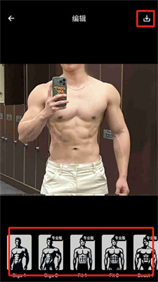 2、上传好对应的照片以后,选择底部的增肌滤镜,每一个生成的效果不同。