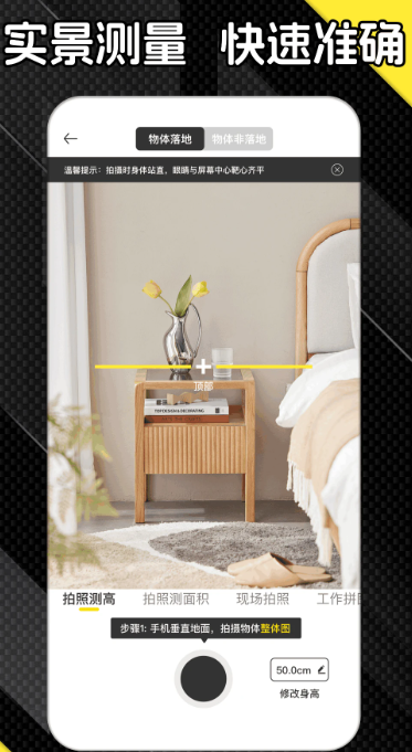 身高测量仪app是一个非常好的手机测量工具,可以帮助人们快速测量自己的身高。它还支持许多其他测量服务,让您随时随地体验更多的便利。不同精度水平可调,快速满足人们的不同需求。它的主要功能是帮助人们把相机变成精确的测量尺子,支持多次重复测量。它支持对同一项进行多次重复测量。在使用此应用程序之前,您需要移动您的移动设备。一旦系统检测到一个稳定的平面,你就可以拍照进行测量。
