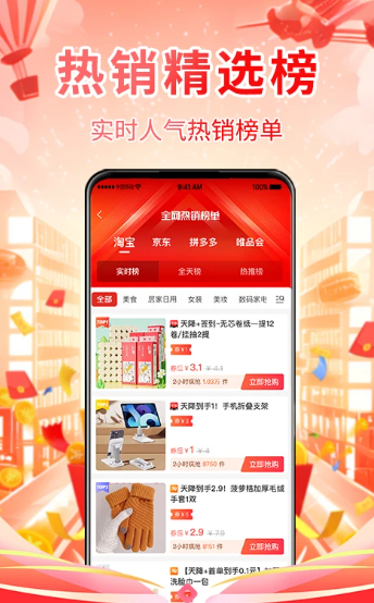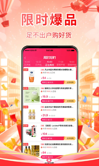 1、限时抢购 可以在软件中查找最新发布的限时秒杀活动,参与秒杀活动低价抢购商品。