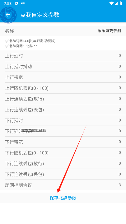 2、这里我们点击自定义北辞14.0参数,来到参数设置页面进行设置,设置完成后保存北辞参数。
