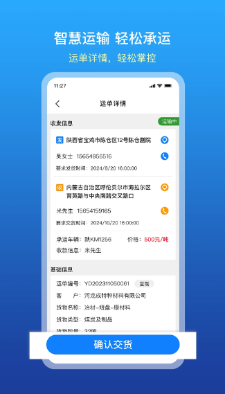 2、承运管理:提供详细的承运信息,包括货物详情、运输路线、预计到达时间等,让司机对整个运输过程了如指掌。