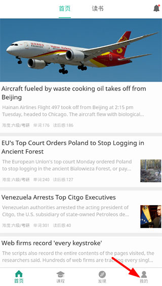 1、在首页,可以根据你的学习年级进行设定,app会根据你的情况进行推送阅读内容。