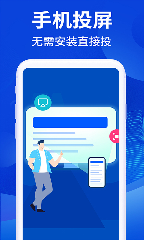 1、一键式屏幕投影:支持快速搜索和连接到同一Wi-Fi网络下的智能电视、投影仪和其他设备,分三步完成屏幕投影。