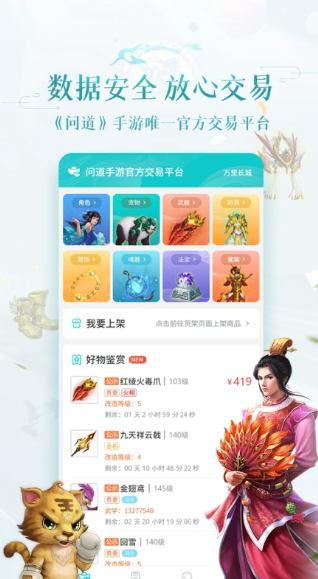聚宝斋是雷霆游戏官方交易平台,为问道手游游戏玩家提供角色、宠物、装备等物品的交易服务,服务超过600万玩家,安全成交超1900万笔。聚宝斋app软件不仅可以在线交易角色、宠物、武器、防具,还可以在线交易饰品、法宝、魂器、金币等道具。商品展示更真实。当然,最重要的是,支持玩家一键陈列商品,一键提取金额!感兴趣的朋友不要错过下载聚宝斋app。