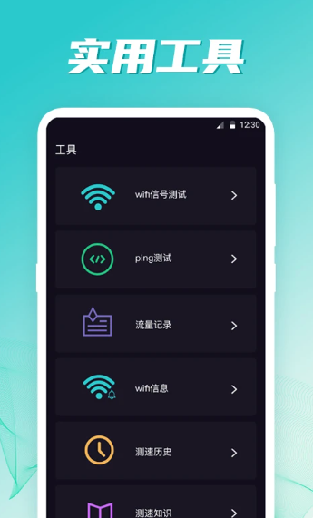 2、【信号强度,一目了然】 信号强度测试,可以一键点击查看, Wifi信号测试,寻找附件信号更好的地方,动画图标,生动明确。