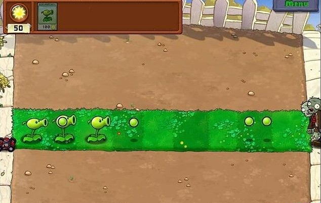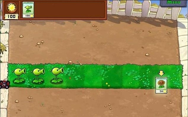 1、此关属于教程关,僵尸来路只有1条。收集太阳并种好豌豆射手就可以了,不过别把豌豆射手种在右边僵尸出现的地方自杀就可以轻松过关。