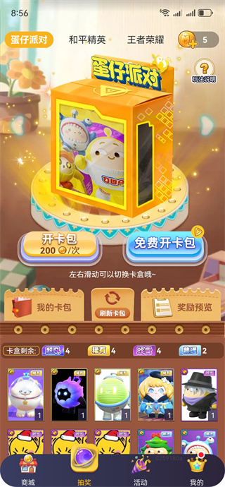 2、提供线上抽奖活动,可以获取不同游戏的福利,左右滑动就可以切换卡盒。