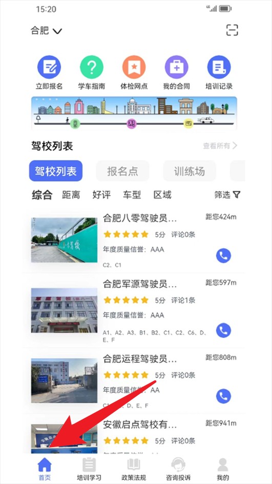 1、该软件将根据用户的位置提供附近驾校的列表,用户可以随时查看。