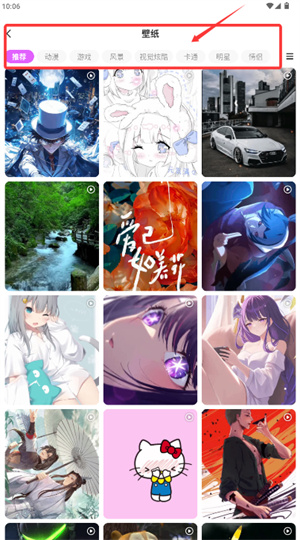 2、以壁纸专区为例,通过动漫或卡通标签筛选心仪风格背景图。
