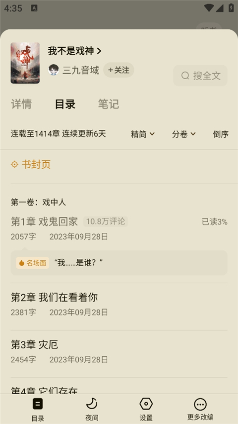 3、在功能栏的左下角找到【目录】选项并点击,左侧或新页面将显示完整的章节列表。