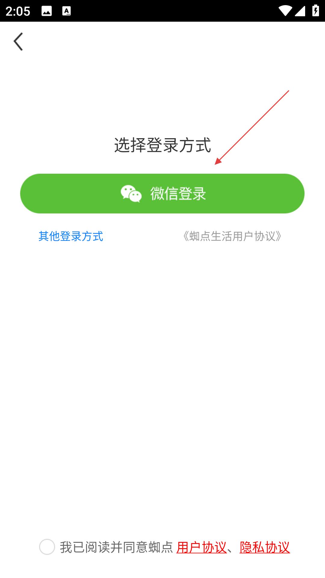 2、登录界面可选择微信登录或其他登录方式,需勾选同意用户协议、隐私协议,完成登录操作。