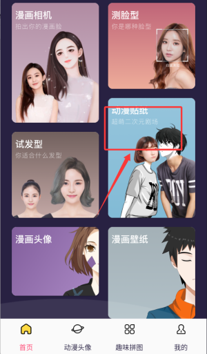 3、创意贴纸板块提供丰富的动漫风格装饰元素,可根据拍摄场景需要自由选择各类动态或静态的卡通贴纸效果。