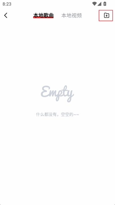 3、点击后进入本地歌曲功能界面,目前我们这里是没有导入任何音乐的,点击右上角的导入按钮;