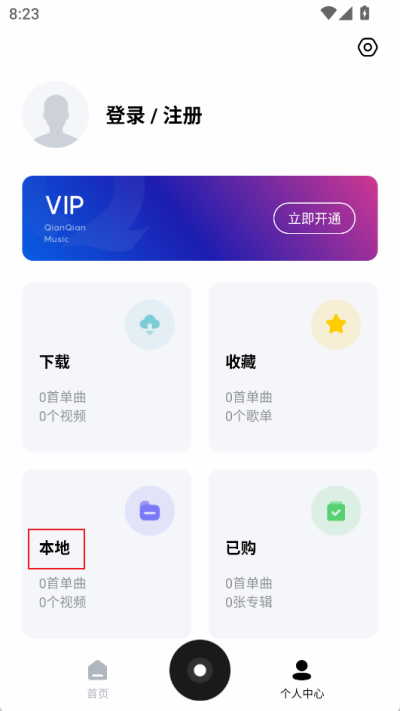 2、点击后进入个人中心界面,在这里找到下方的【本地】选项并点击;