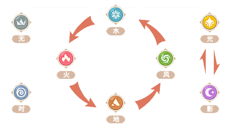 当属性克制时,进攻方的元素伤害会增加100%,反之则会减少50%。