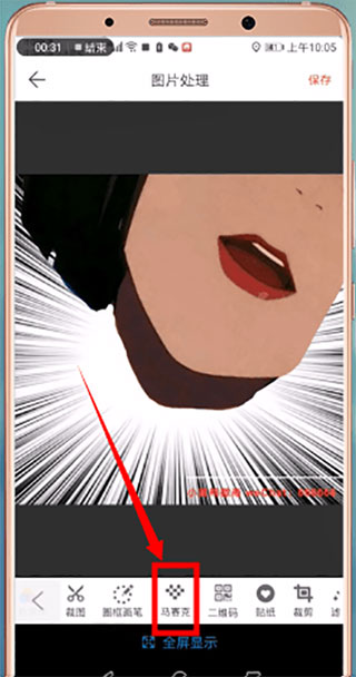 4、接着选择画笔图案、形状和大小,再对水印进行遮盖操作,点击保存即可;