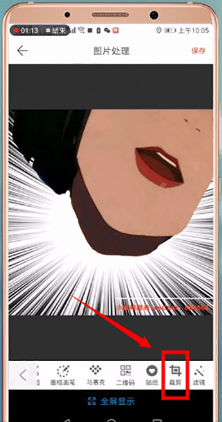 5、还可以在【图片处理】页面直接点击底部【裁剪】,将水印部位截掉即可;