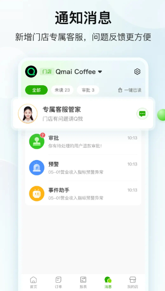 4、专属客服 为商家提供专属的在线客服,随时掌握门店经营的最新业务问题。