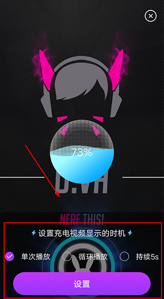3、在选中的充电动画页面内,点击【设置充电动画】,并进行显示设置;