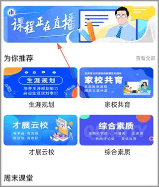 1、打开巴蜀云校,进入首页,点击“课程正在直播”。