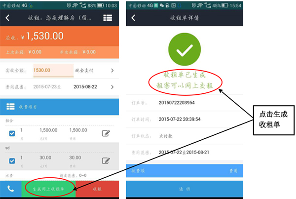 3、催收租金:一键将账单发送给租客,同时提交租金,提高租金收取效率。