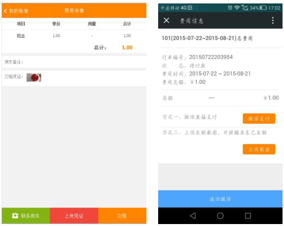 4、租客在“好好租”app或者微信公众号里查看费用信息。