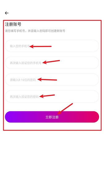 3、输入手机号码、密码与验证信息,填写完成后点击“立即注册”成功创建账户。