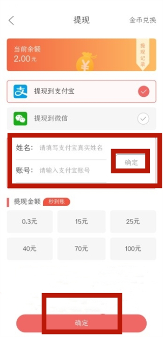 4、可以选择提现到支付宝/微信,输入绑定的信息即可完成提现。