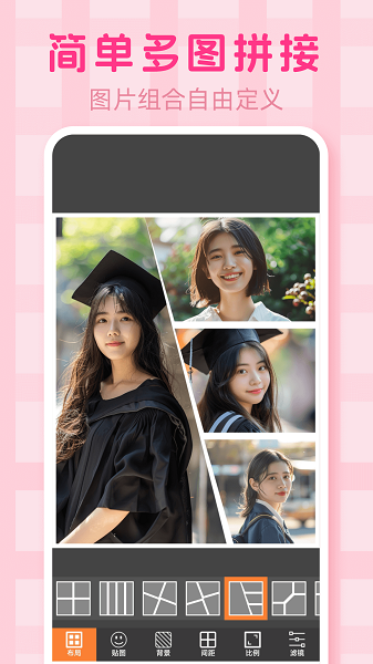 1、零基友好:专为非设计专业人士设计,界面直观,功能清晰,分3步完成拼图。