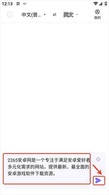 3、这里以文本翻译为例将需要翻译的内容输入或粘贴进来,接着点击发送按钮。