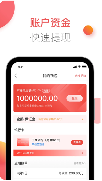 4、快速取现,商家可以在线查看自己的账户,快速提取到自己的银行卡中。