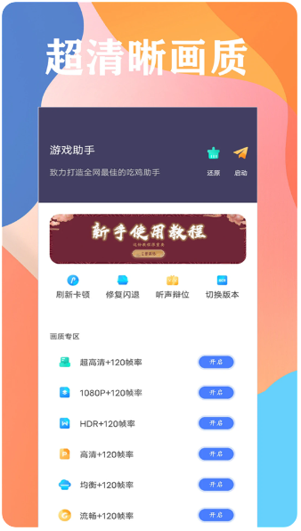 画质大师是为和平精英制作的画质调整软件,使用该软件可以完美解除最高120帧的超高精细画质的锁定。画质大师软件中搭载的优化功能可以给玩家带来超有帮助的游戏体验。画质大师软件的整体页面布局非常简洁,没有广告,各项功能一键打开。不仅支持和平精英的正式服装,还支持体验服、国际服、台湾服等版本。任何版本都可以一键打开最高画质。需要的用户可以下载这个版本。所有功能都是免费的,感兴趣的朋友不要错过下载。