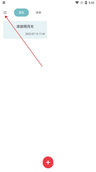 1、下载好爱便签app后点击打开,进入软件后点击左上角。