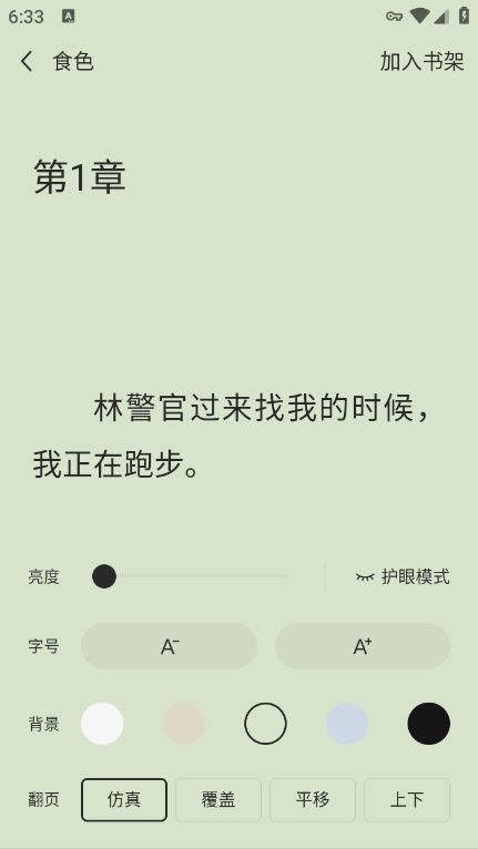 5、支持自定义调整字号大小,背景颜色以及翻页方式。