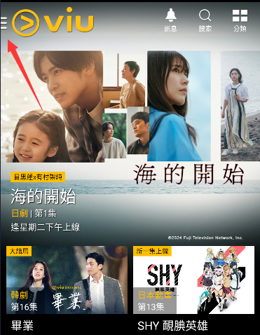 1、登录viu平台以后,点击左上角的【三】,进入菜单页面。