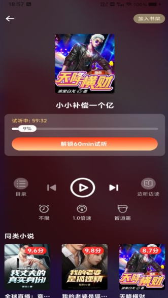 2、该软件会根据你的小说阅读和听力记录,向你推荐同类型的小说。