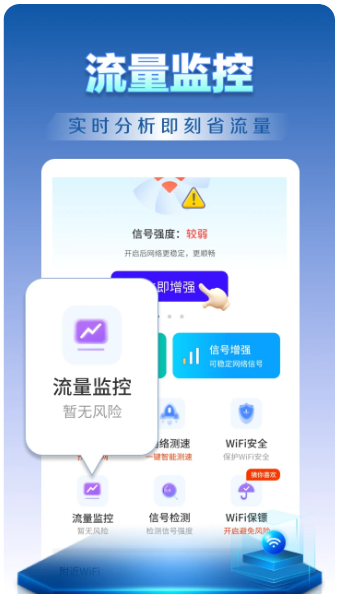 1、WiFi检测 具有强大的WiFi信号检测功能,可快速检测用户附近的WiFi热点。