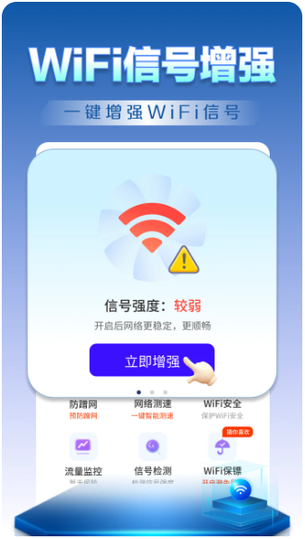 4、加强网络 提高网络的稳固性,一键提高网络的稳定性,让用户更安心地连接互联网。
