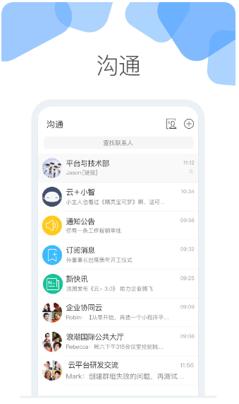 云加通过移动场景重新组织浪潮GS管理软件后台工作,赋予其移动化、智能化、协作化能力,为企业提供更好的移动APP体验。融合云和最新技术,基于云部署,立即申请; 融合移动设备管理云,支持安全可靠的开放标准协议,可作为集成移动门户集成第三方轻量级APP应用,是一个智能的企业移动APP应用平台 以工作为中心的交流:聊天内置智能对象,可以围绕审批、报告等各种业务对象进行交流,实现信息同步、知识共享、创意激励。