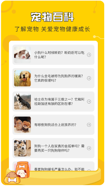 2、通过这个功能,可以了解各种品种的狗的特征、习性以及正确照顾它们的方法。这有助于更好地照顾爱犬,提供健康幸福的生活环境。