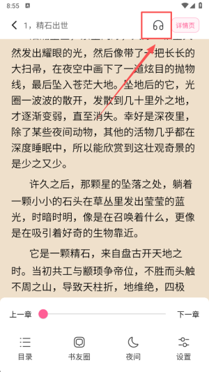 4、点击耳机图标即可开启听书功能,享受声声入耳的阅读乐趣。