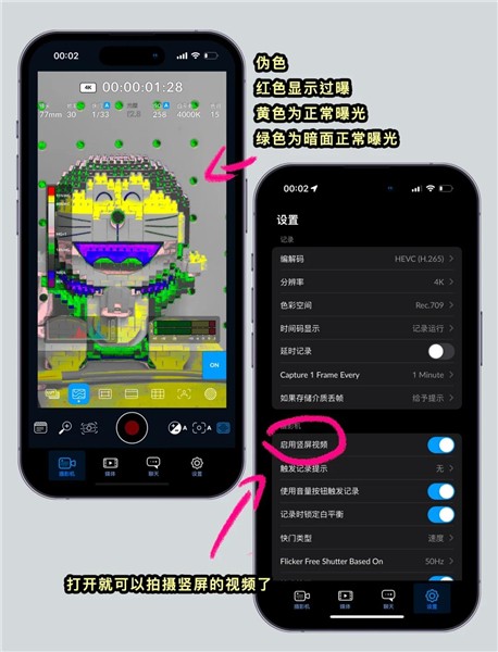 最后,别忘了调整伪色和编解码设置。伪色可以帮助你更好地调整画面的曝光,而编解码设置则决定了视频的分辨率和色彩空间。这些设置都能让你的视频质量更高。