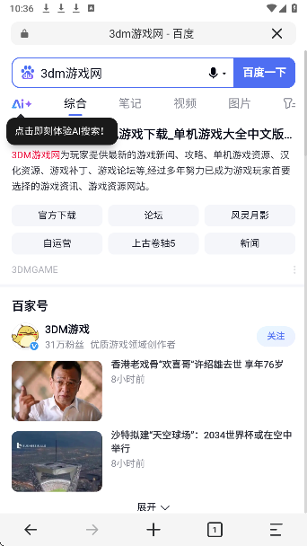 3、您可以搜索您感兴趣的网站,以3dm游戏网站为例。