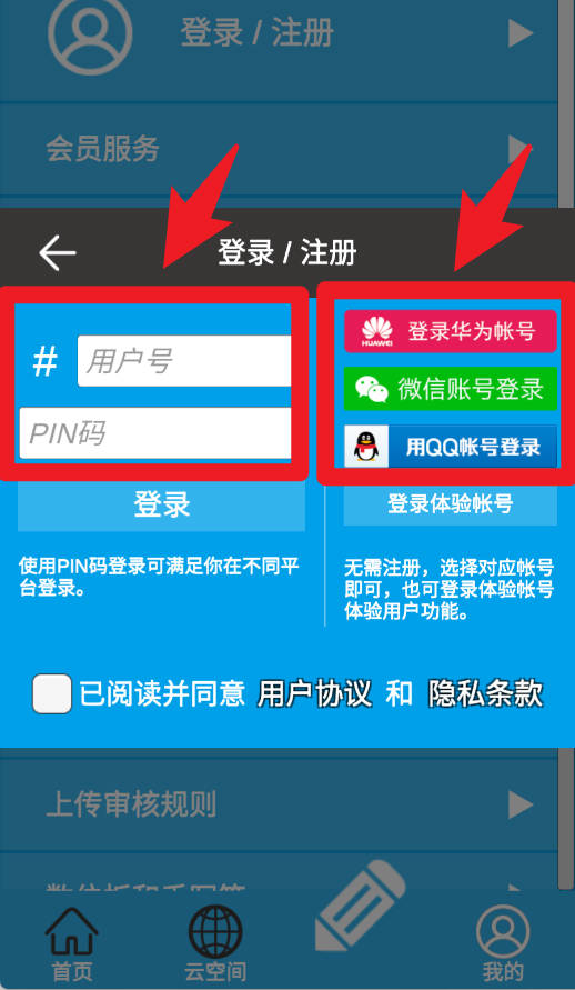 1、在登录页面,可以选择输入账号和PIN码登录,也可以通过华为、微信或QQ账号快速登录,轻松进入系统。