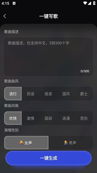 3、点击“一键生成”按钮,等待AI创作完成,即可获得属于自己的个人单曲。
