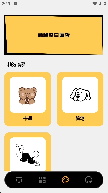 其次软件中还提供了画板功能,如图所示,用户可以通过新建空白画板进行临摹创作。