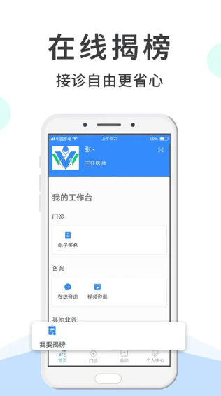 1、线上问诊 可通过平台与患者进行图文视频问诊,方便医生在线与患者沟通。