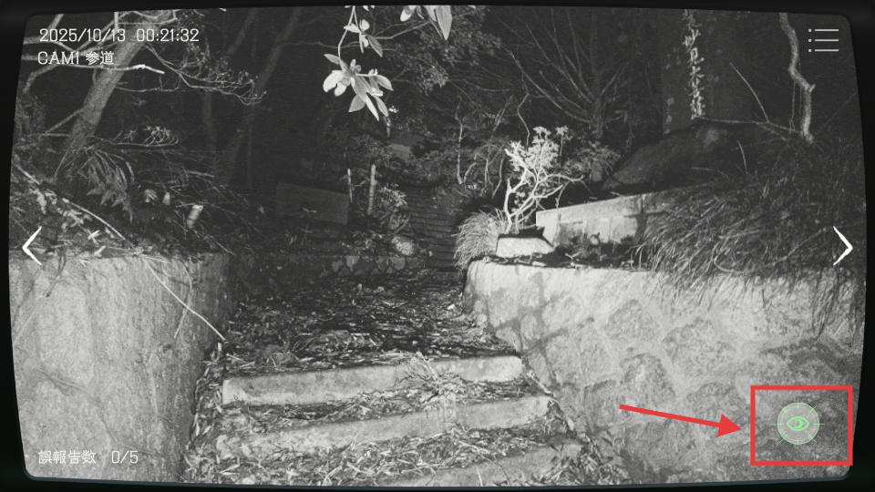 3、在【CAM1-参道】监控时,点击右下角绿色检测图标,排查画面异常点。