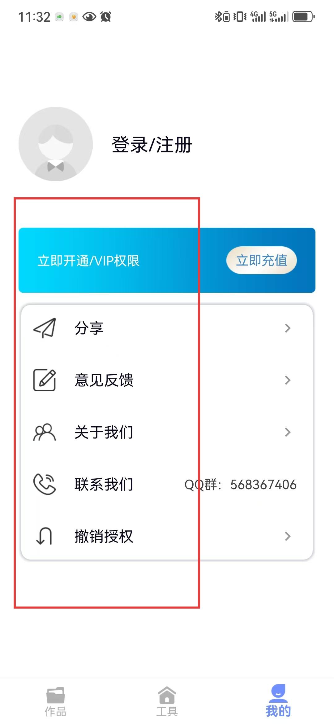 3、点击进入个人中心,若需完整功能可先完成登录注册,这里能开通VIP权限解锁更多服务,也有分享、意见反馈等功能,通过联系我们方便后续操作遇到问题时咨询。